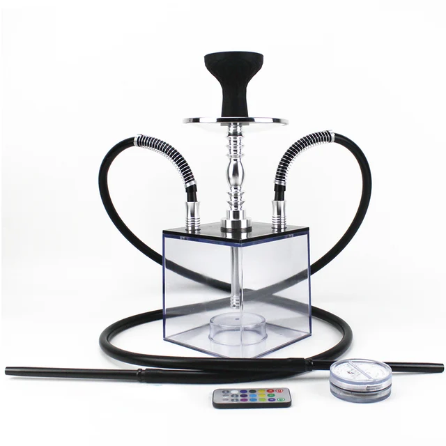 Cube Acrylic LED Hookah Set with 2 Hoses and Silicone Bowl